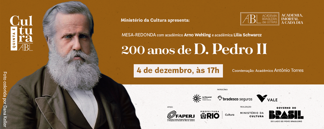 A Acadêmica e antropóloga Lilia Schwarcz e o Acadêmico e historiador Arno Wehling participarão da mesa-redonda "200 anos de D. Pedro II" na quinta-feira, 4 de dezembro, às 17h. O evento integra a programação do Quinta é Cultura e a coordenação é do Acadêmico Antônio Torres.